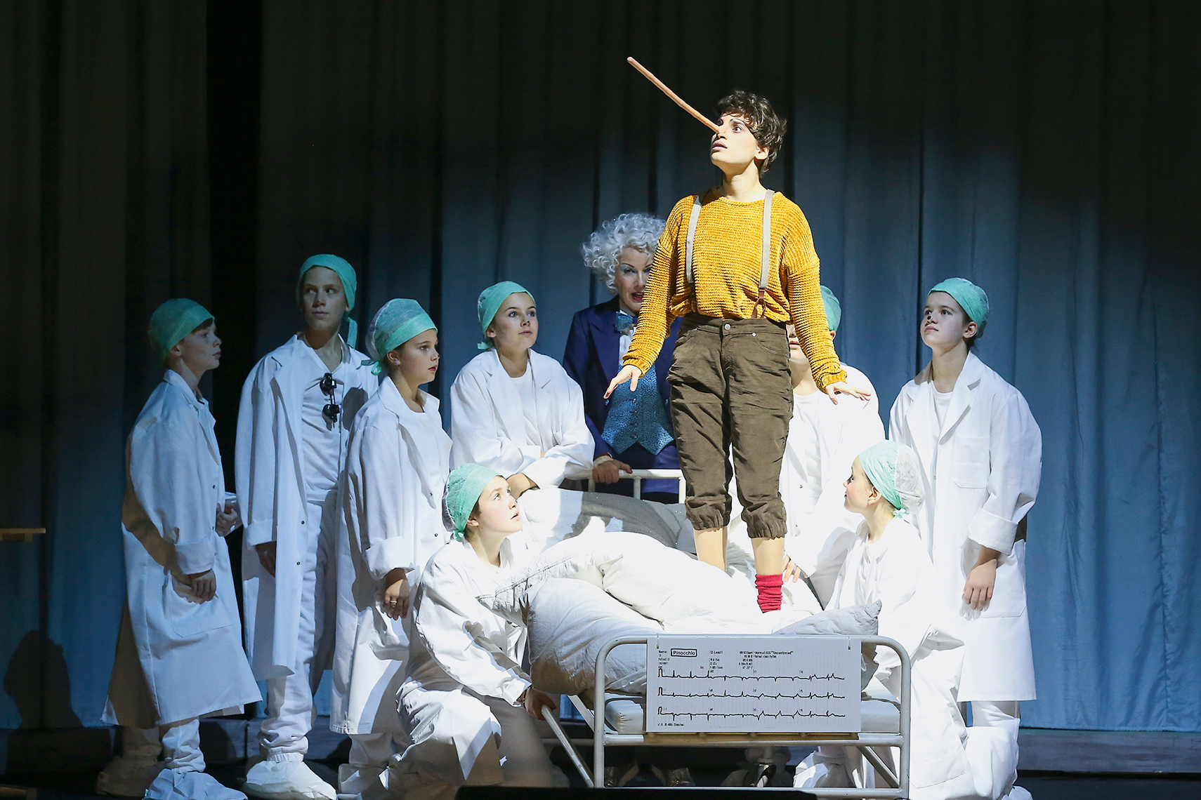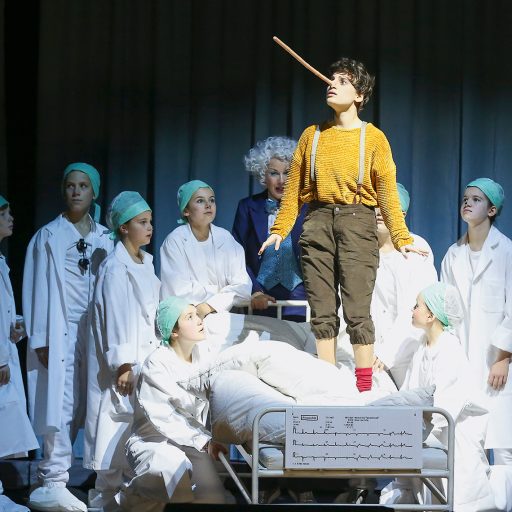 Sie alle proben für „Pinocchio“, das neue Stück der Volksoper Wien, das am 19. November Premiere gefeiert hat. Die österreichische Uraufführung erzählt die weltbekannte Geschichte von Carlo Collodi in der eine kleine Holzpuppe sich nichts sehnlicher wünscht, als ein richtiger Junge zu werden. Wie schon im Original spielen auch in der Oper des Komponisten Pierangelo Valtinoni Kinder die Hauptrolle. Während Pinocchio von der erwachsenen Sopranistin Juliette Khalil verkörpert wird, stellen 45 Mitglieder des Kinder- und Jugendchors der Volksoper Puppen, sprechende Grillen, Quallen, Seepferdchen, Zebras und allerlei andere Fabelwesen dar.