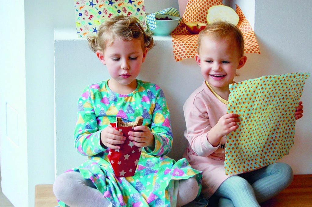 Kinder können beim Herstellen toll mithelfen: Stoffe auswählen und zurechtschneiden, Bienenwachs zerkleinern und verstreichen macht genau so viel Spaß, wie das spätere Auspacken des Jausenbrots aus einem kunterbunten Tuch. Bienenwachstücher sind sehr langlebig: Mit Wasser (und notfalls ein bisschen sanftem Spülmittel) kann man Flecken und Gerüche leicht abwaschen und sollte sich das Wachs mit der Zeit etwas abnutzen, kann das Tuch ganz einfach neu beschichtet werden.
