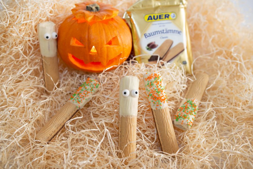 Als Basis für die kleinen Monster-Cupcakes dient der Klassiker der Blaschke Familie: die originalen Blaschke Kokoskuppeln. In wenigen Schritten verwandeln sie sich in kleine, furchterregende süße Monster – die all ihre Augen auf ihren Schöpfer richten. Für den zweiten Streich kommen die Auer Baumstämme zum Einsatz. Schnell mit weißer Kuvertüre überzogen und mit kleinen Augen bestückt, lehren sie einem als Monster-Sticks das Fürchten. Die beiden schauderhaften Köstlichkeiten lassen sich leicht und schnell selbst zu Hause zubereiten – viel Freude beim Nachmachen und Gruseln!
