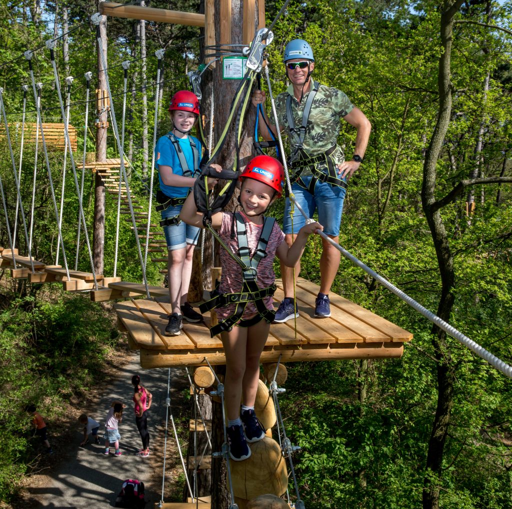 Der Waldseilpark Kahlenberg befindet sich auf Wiens beliebten Hausberg, dem Kahlenberg. In einer Höhe von 1 bis 20 m werden verschiedene Hindernisse, die sich zwischen lebenden Bäumen befinden, überwunden. Ohne besondere Ansprüche an die eigene Fitness oder körperliche Verfassung wird so an insgesamt 17 Kletter‐Stationen, welche sich mit einer Gesamtlänge von 1,8 km über eine Fläche von 30.000 m2 erstrecken, für alle das Passende geboten: für Groß und Klein, für Anfänger und Fortgeschrittene und natürlich auch für Profis! Es bleibt jedem frei, zu entscheiden, wie hoch, wie weit und wie lange geklettert werden soll – und ganz nebenbei kann die grandiose Aussicht über die Wiener Skyline genossen werden, oder man fliegt mit unseren Flying Fox‐Anlagen durch die Baumwipfel!
