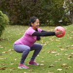 Du startest in einem Schulterbreiten Stand, der Ball ist zwischen beiden Händen positioniert. Dein Beckenboden aktiviert schon im Stand Richtung oben innen und du kommst mit der Ausatmung in die Kniebeuge. Halte nun die Beuge, achte darauf, dass deine Knie nach außen drücken und nicht einwärts fallen. Aus dieser Position heraus drücken deine Handflächen nun pulsierende Bewegungen gegen den Ball. Zähle langsam von 10 abwärts bis 1. Wiederhole 3- 5 Mal die gesamte Ausführung. Erinnere dich daran: falls du keinen Pilatesball zur Verfügung hast, reicht auch ein gewöhnlicher Luftballon.