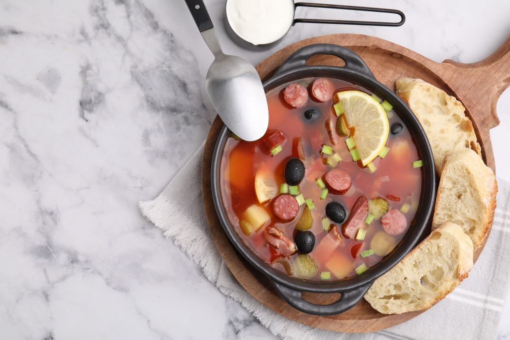 1. Die Suppe in einem Topf zum Kochen bringen, den Grieß einrühren.