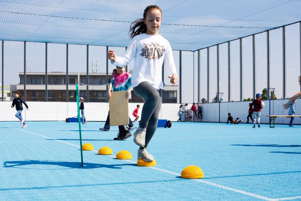 „Es heißt immer, die Kinder können sich nicht konzentrieren, zappeln immer nur rum – ich kenne das eigentlich gar nicht“, erzählt Natalie Sverak. „Weil die Schüler sich bewegen dürfen, müssen sie auch nicht nervös sein. Und durch die ständige Bewegung wird Anspannung abgebaut statt unterdrückt.“ Auch die Eltern sind alle mit an Bord. Ihr Einverständnis ist notwendig, immerhin müssen sie sich bereiterklären, einen Beitrag von 15 Euro im Semester zu bezahlen (nur mit Hilfe dieser Mitteln ist es möglich, die vielen Geräte zur Verfügung zu stellen) und nicht zuletzt auch damit einverstanden sein, dass der Unterricht nicht nur in der Klasse, sondern manchmal eben auch am Rollbrett flitzend draußen am Gang stattfindet. Damit auch dabei die notwendige Sicherheit gewährleistet ist, steht neben Rechnen und Schreiben auch der richtige Umgang mit dem Gefährt auf dem Stundenplan. Als eine der ersten Prüfungen in ihrer Schullaufbahn legen alle Kinder den sogenannten „Rollbrettführerschein“ ab, der sie dazu befähigt, die Gänge eben auch fahrend unsicher zu machen. „Ich kann mir gar nicht vorstellen, in eine Schule zu gehen, in der man den ganzen Tag sitzen muss“, erzählt Sophie, während sie routiniert über den Sportplatz balanciert. Und so wurde auch die Wahl des Gymnasiums, auf das sie bald gehen will, aufgrund des guten Sportangebots getroffen.