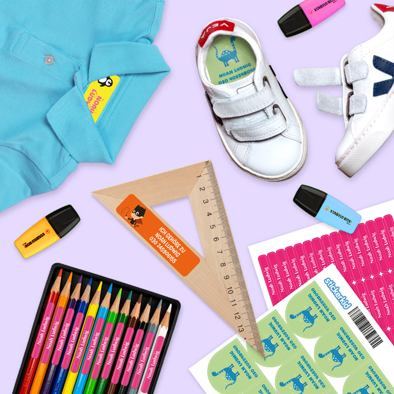 - Wenn die Schulsachen mit den selbst gestalteten Stickern versehen sind, macht das Kinder stolz und sie achten besser auf ihr Eigentum. Außerdem helfen Namenssticker dabei, dass verlorene Gegenstände schnell wieder zu ihrem Besitzer zurückzufinden.