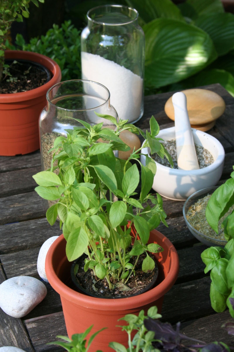 Dazu benötigt ihr eure Lieblingskräuter in getrockneter Form, Meersalz, einen Mörser und ein Schraubglas. Im Mörser vermahlt ihr die getrockneten Kräuter so lange mit dem Meersalz, bis sich alles gut vermengt hat. In einem hübschen Glas abgefüllt und beschriftet ist das Kräutersalz auch ein nettes Geschenk oder Mitbringsel für eine Grillfeier.