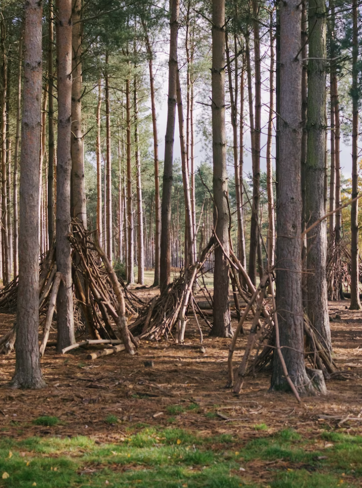 • Tipi bauen: je mehr Äste, desto dichter wird das Wald-Zelt