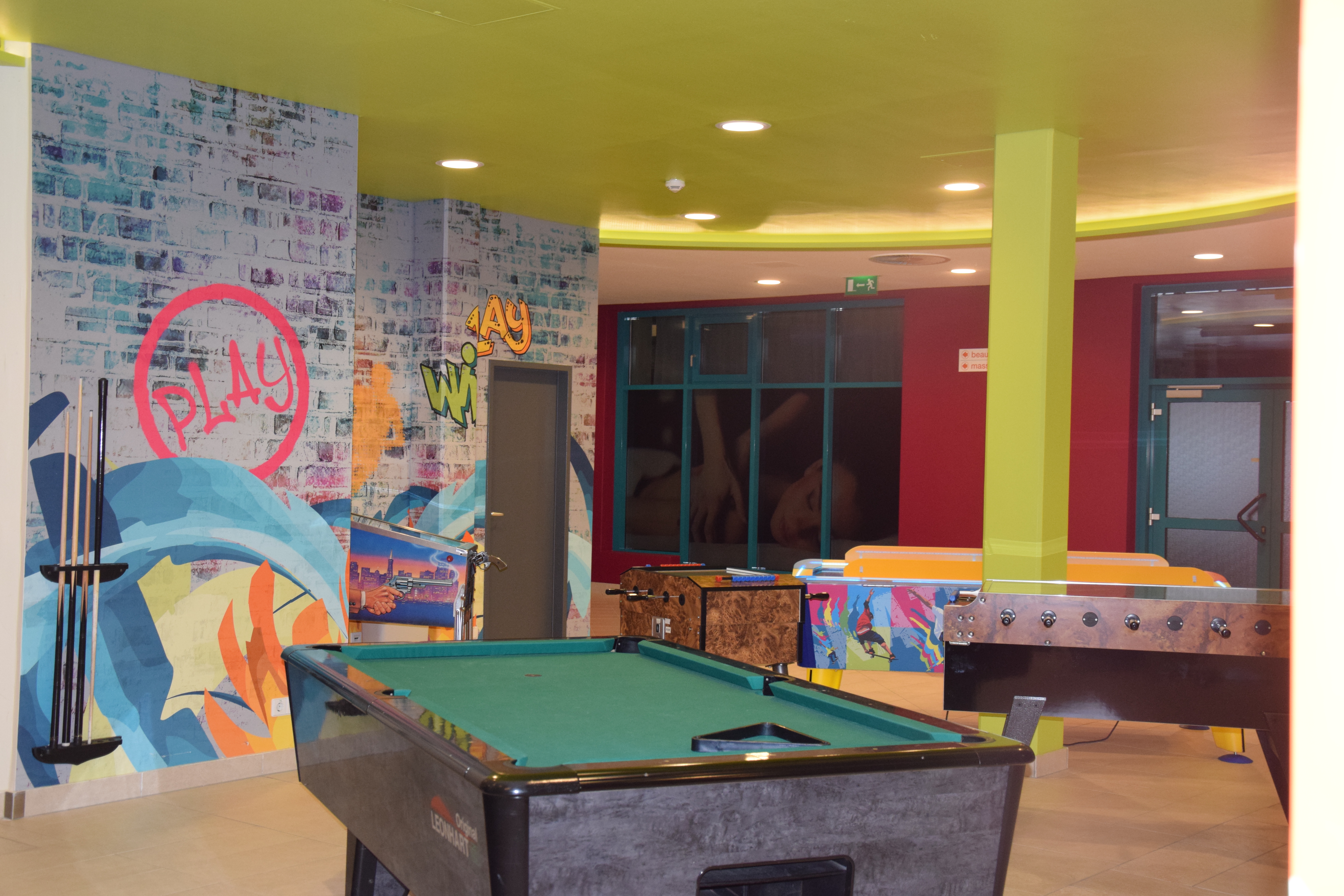 Auch einem lang ersehnten Wunsch der älteren Kids und Jugendlichen konnte nachgekommen werden. Die beliebte Gaming Area wurde großzügig erweitert und ein neuer, cooler Look verpasst. Zahlreiche Spielgeräte, wie z.B. Air Hockey, Flipper, Wiis, Billard und Tischfußball bieten nun genügend Raum für den Gaming Spaß zwischendurch, abseits der Mega Rutschen, Kletterwand, Wellenbecken und sonstigen Wasserattraktionen.
