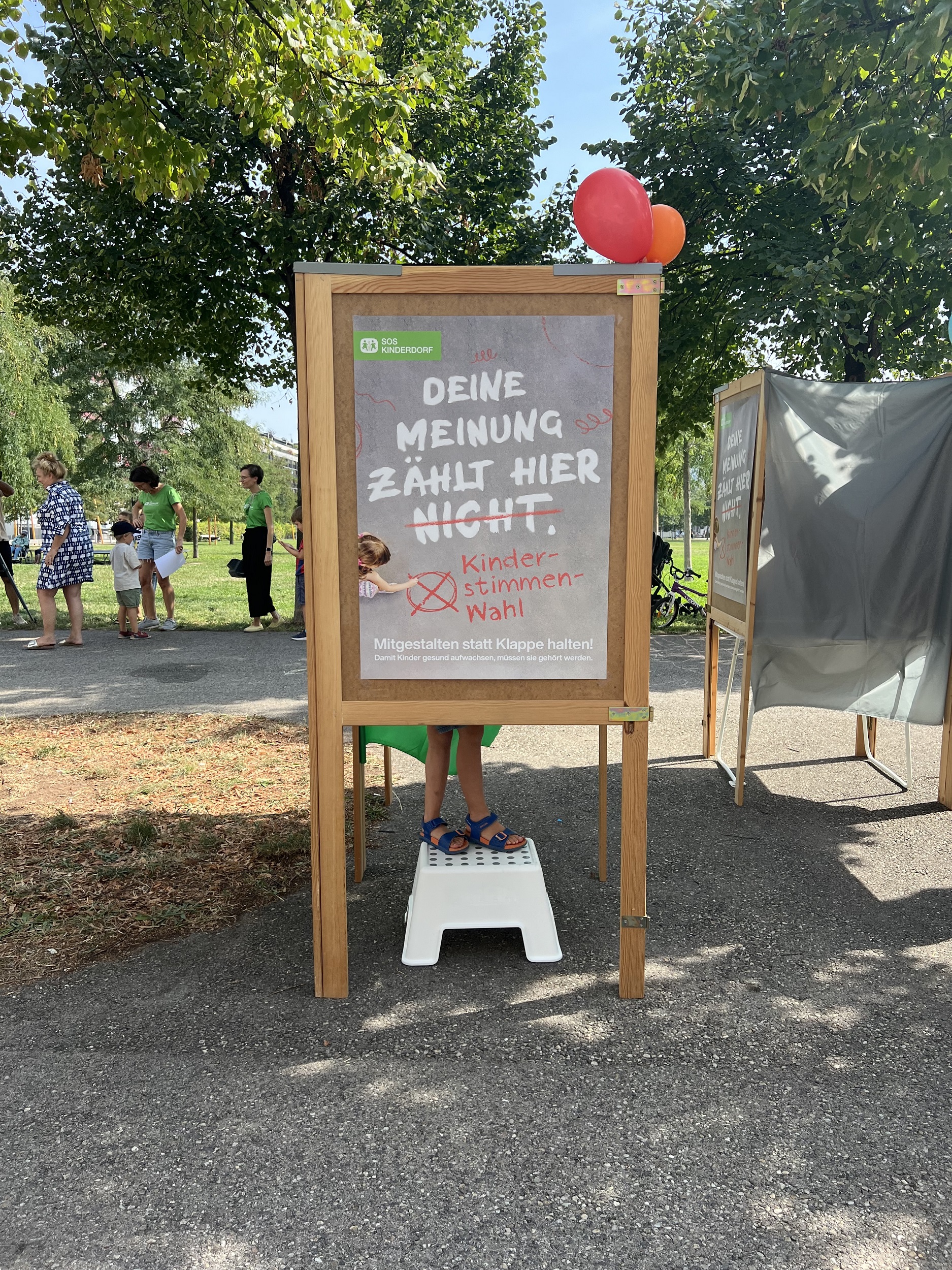 Wahlkabinen, Wahlurne und Wahlzuckerl mal anders: Am Freitag, dem 6. September, wurden im Wiener Rudolf-Bednar-Park sechs Wahlkabinen aufgestellt. Und kurz darauf schauten kleine und große Kinderfüße unter ihnen hervor. Denn SOS-Kinderdorf fragt vor der Nationalratswahl möglichst viele Kinder in ganz Österreich: Welche Themen sind euch am wichtigsten? An verschiedenen Orten und Terminen können Kinder auf kindgerechten Stimmzetteln darüber abstimmen und damit ihre Meinung kundtun. Über 500 Kinder haben bereits teilgenommen – in Innsbruck, Seekirchen, Oberwart und zuletzt in Wien.