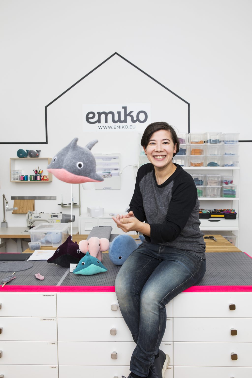 Nach einer Ausbildung an der Modeschule Hetzendorf und einer langjährigen Tätigkeit als Art-Direktorin in der Werbung begann Emiko Fujinaga im Jahr 2010, Stofftiere zu entwerfen. In ihrem Wiener Atelier entstehen seither Waltraud, der Wal, Jochen, der Rochen, oder Dörte, der Dackel – allesamt aus Biobaumwolle. Die Kunden können ihr individualisiertes Tier aus zig verschiedenen Farben selbst zusammenstellen und den Namen des Kindes einsticken lassen. Das Füllmaterial der Tiere: Polyesterfasern, die die flauschigen Gefährten waschbar, formbeständig und allergikerfreundlich machen.