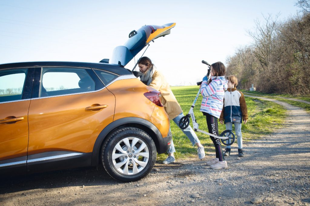 Die Roller von Megan und ihrem Bruder Ben lassen sich unkompliziert im Kofferraum des SUV verstauen.