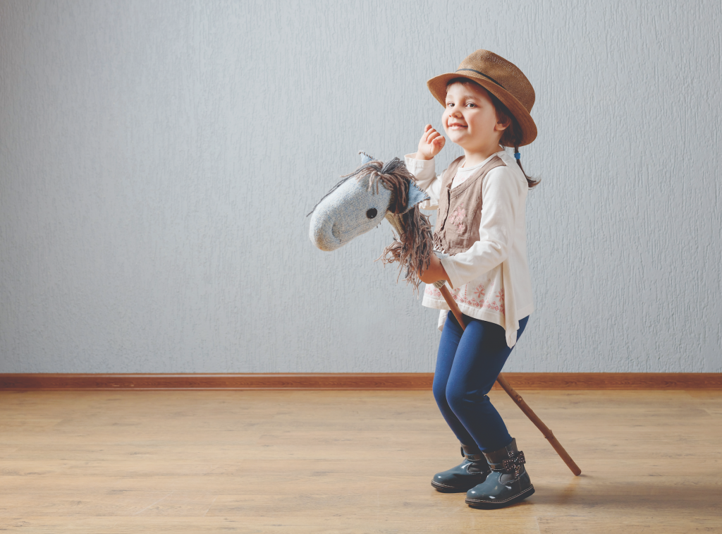 - Als Kleidung eignen sich Jeans und Stiefel. Dazu eine Bluse mit einer Weste kombinieren. Hut aufsetzen und schon kann das Sockenpferd gezähmt werden!