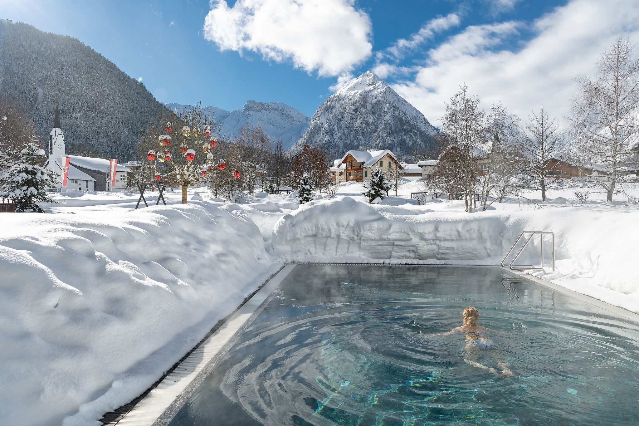 Die 4.000 m2 große Wellness und Spa-Landschaft im Das Rieser Aktiv & Spa Resort hält noch mehr genussreiche Plätze drinnen und draußen bereit. Etwa die 80 m² große Private Spa Suite, in der es neben finnischer Sauna und Dampfbad auch eine Whirlwanne und ein Luxus-Ruhebett mit 100 Prozent Privatsphäre gibt. Hier kann man sich zusätzlich ein Verwöhnbad bei Kerzenschein gönnen oder eine Aromaölmassage. In den Behandlungsräumen werden neben Körper- und Beauty-Behandlungen auch hochwirksame Ayurveda-Treatments angeboten. Danach dreht man im beheizten In- und Outdoor-Pool seine Runden oder gibt sich in einem balinesischen Bett der absoluten Ruhe hin.