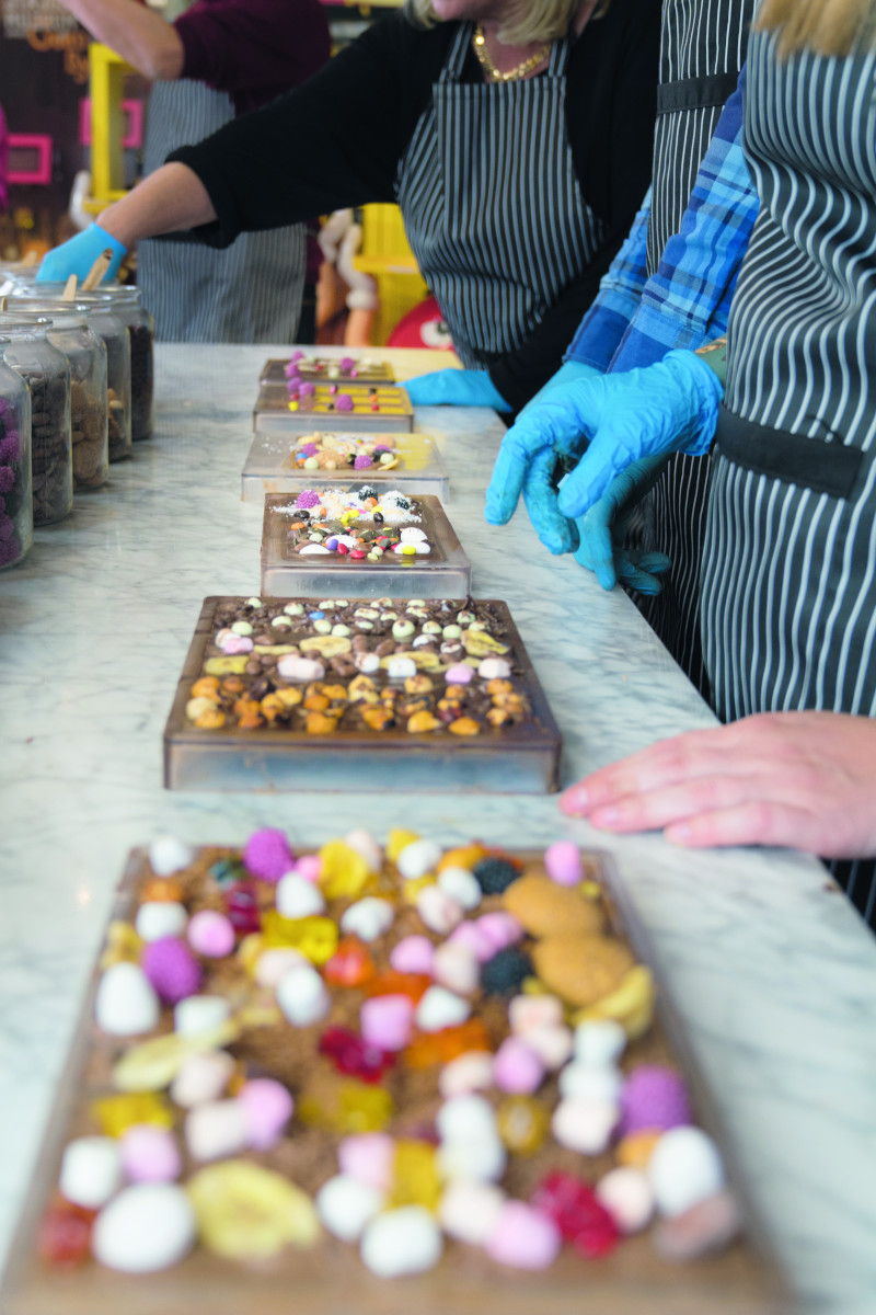 Im Chocolate-Shop gibt es hausgemachte Schokolade. Ob Dragees, Schokoladetafeln, Schokolade in den ausgefallensten Formen oder Pralinen – alles von feinster Qualität, selbstgemacht von den Chocolatiers, die ihr Know-how auch in Schokoladen-Workshop zur Verfügung stellen. Gemeinsam mit den Chocolatiers können Teilnehmer ihre eigene Tafeln Schokolade herstellen. Mit verschiedensten Toppings aus Besonderheiten aus der ganzen Welt werden diese verfeinert und verziert. Auch ihre eigenen Pralinen können Gäste kreieren. Und was nicht fehlen darf: heiße Schokolade nach Original-Rezept der Azteken.