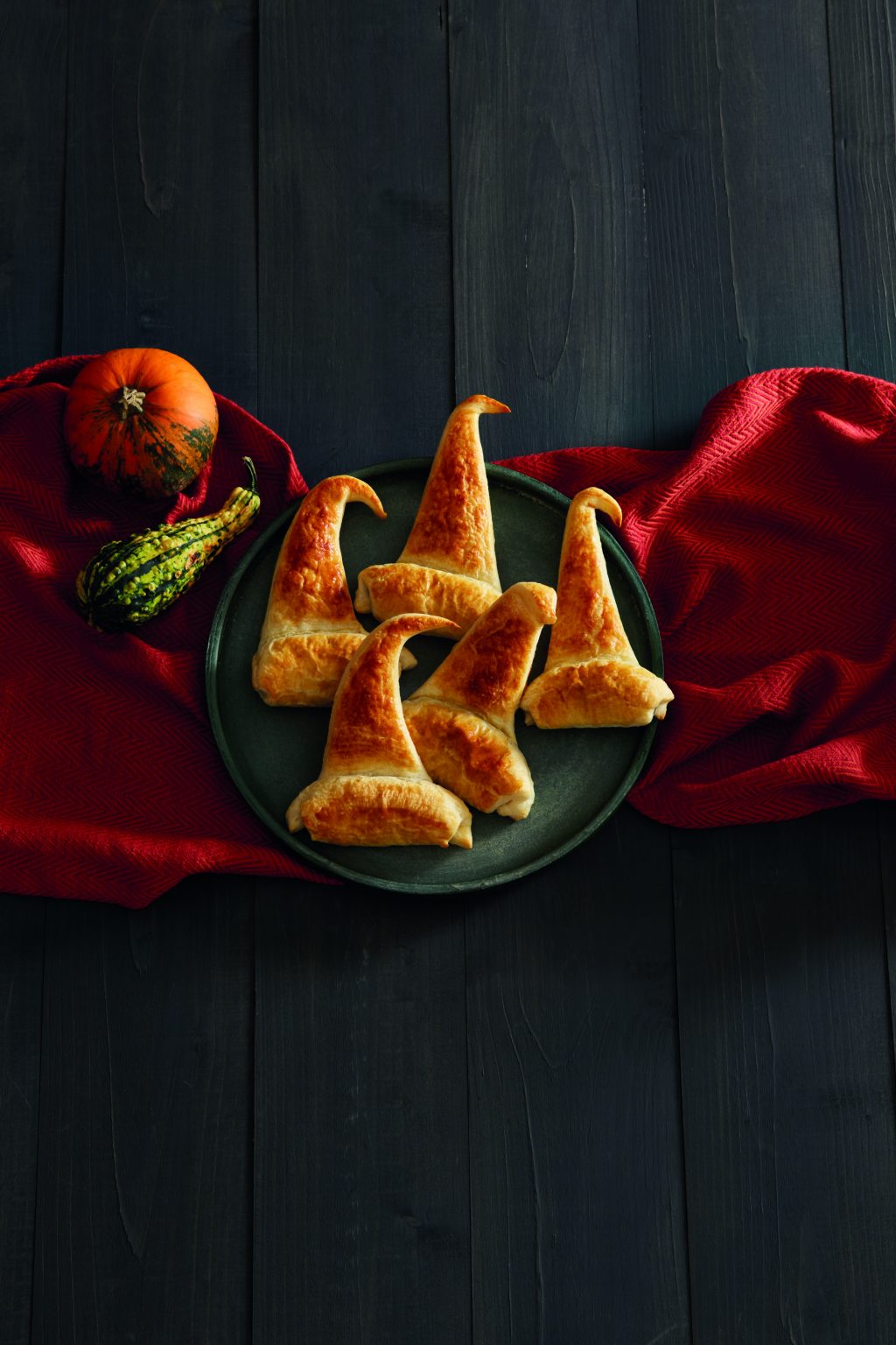 Unsere Hexenhüte mit Schokofüllung aus Butter-Croissant- & Plunderteig sind gar keine Hexerei, sondern im Handumdrehen zubereitet und dazu noch ein optisches Highlight am Party-Buffet.