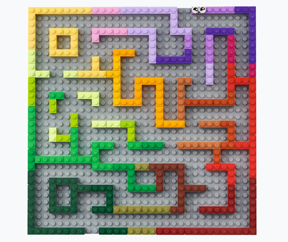 © The LEGO Group 32 x 32 cm Basisplatte Wege müssen zwei oder mehr Noppen breit sein, damit die Kugel hindurchpasst. Alle Wände sind einen Stein hoch. Baue Sackgassen ein. Baue die Wände in verschiedenen Farben.