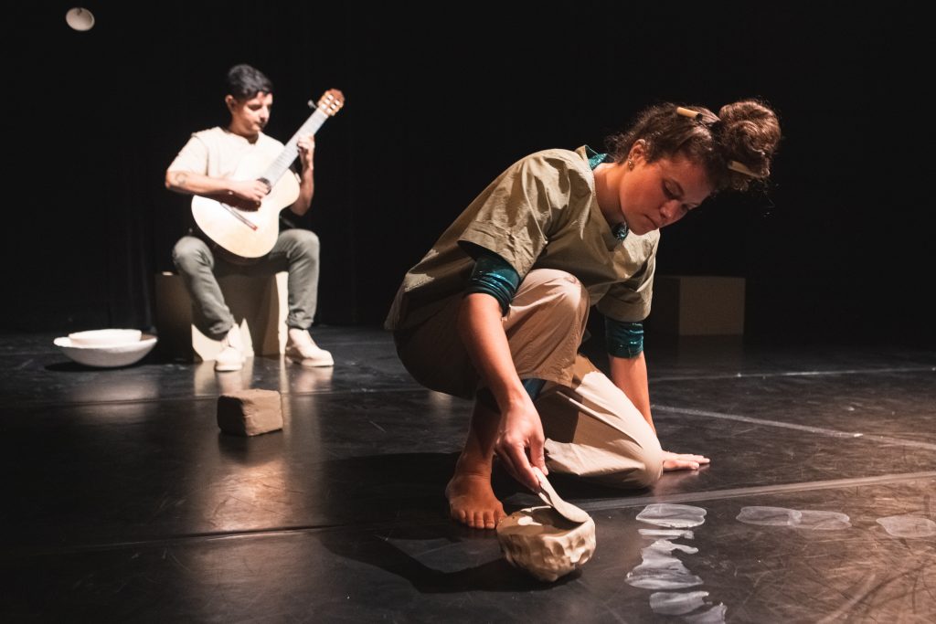 Ein Klumpen Ton, eine Tänzerin, ein Musiker – gemeinsam formen sie mit ihren Körpern Töne. Kulen, Mulden, Matsch! Was lässt sich noch entdecken?