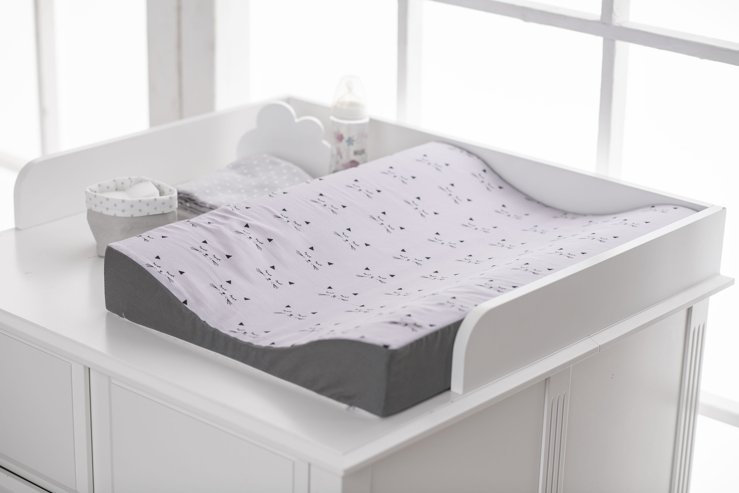 Ganz in diesem Sinne präsentiert das Unternehmen nun PVC-freie Wickelauflagen und -mulden. Wasser- und urinundurchlässig sowie wasch- bzw. abwaschbar lassen diese in Sachen Hygiene keine Wünsche offen. Sowohl die Wickelauflagen als auch -mulden sind in acht unterschiedlichen, kindgerechten Designs erhältlich und lassen sich so spielend leicht in jedes Ambiente integrieren.