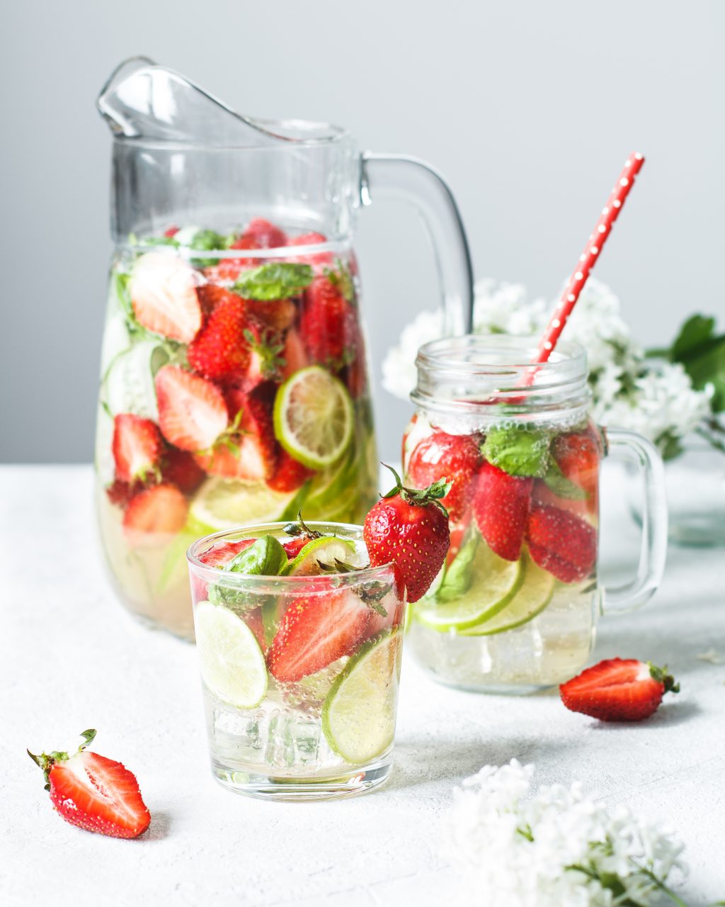 Ihr Tipp: Abends in einer Karaffe schon das Obst und Kräuter mit einem Achtelliter Wasser ansetzen und über Nacht im Kühlschrank lassen. So entsteht ein geschmacksintensiveres Konzentrat, das man am nächsten Tag mit frischem Wasser auffüllt.