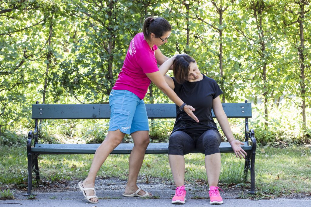 Zu Beginn des entspannenden Programms stehen Wahrnehmungsübungen zur eigenen Körperhaltung, Sitzposition und Routinebewegung. Werden hier krankmachende Bewegungsmuster entdeckt, so gilt es, diese aufzubrechen und durch gezielte Übungen auf korrekte Positionen und Bewegungen umzulernen. Bei der Baustelle „Nacken“ gehört sowohl ein Kräftigungs- als auch ein Dehnprogramm der Hals-/Nackenpartie inklusive Brustkorb in den Trainingsplan aufgenommen. Hilfreich sind dabei klassische Gymnastikübungen oder Bewegungsprogramme wie Pilates, Wirbelsäulengymnastik und mamaFIT. Auch Entspannungsverfahren wie Feldenkrais, Yoga, Autogenes Training oder Faszientraining helfen, sich Haltung und Bewegung bewusst zu machen und gezielt gegen die Verspannungen anzukämpfen.