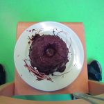 2. Gieße die flüssige Schokolade über den Kuchen und in das Gugelhupf-Loch, sodass der Gugelhupf am Ende noch eine Vertiefung, aber keinLoch mehr hat.