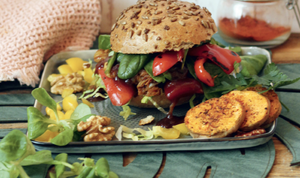 Jackfruit-Pulled-Burger mit Ofenpommes