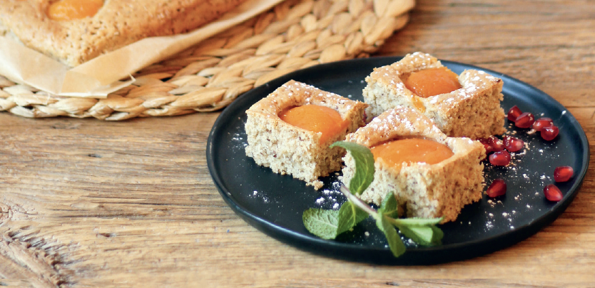 Dinkelvollkornmehl mit Backpulver mischen. Anschließend alles mit den restlichen Zutaten verrühren. Nun den Teig in ein mit Backpapier ausgelegtes Backblech streichen. Die Marillen in Spalten schneiden und auf dem Kuchen verteilen. Diesen bei 180°C Heißluft ca. 30 Minuten backen. Auskühlen lassen, mit Staubzucker bestreuen und servieren.