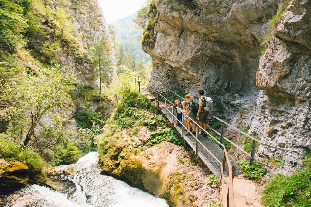 170 Quadratkilometer pures Naturerlebnis mit wilden Schluchten und tosenden Wasserfällen erwarten große und kleine Wanderer rund um den Ötscher. Ausgangspunkt aller Touren ist das Naturparkzentrum Ötscher-Basis in Wienerbruck. Hier startet auch die mit 8,6 Kilometern für Familien mit kleineren Kindern bestens geeignete Tour Wienerbruck-Alpenhotel Gösing-Hintere Tormäuer-Lassingfall-Wienerbruck. Sie bietet nachhaltige Naturerlebnisse. Nach erfolgreicher Rückkehr zur Basis wartet das Seegasthaus Ötscher-Basis am idyllischen Stausee, wo typische Mostviertler Spezialitäten kredenzt werden. Ausführlichere Infos und weitere spannende Touren um den Ötscher finden Sie unter www.naturpark-oetscher.at/