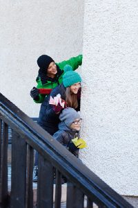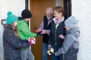 Am 24. Dezember zieht Familie Rak traditionellerweise mit ihren Instrumenten von mittags bis abends durch die Ortschaft und spielt klassische Weihnachtslieder. „Ich finde es so toll, dass die Leute sich freuen, wenn wir kommen“, sagt der zwölfjährige Noah. Die ganze Familie ist im ortsansässigen Musikverein tätig und auch sonst äußerst musikalisch. „In der Christmette spielen wir dann meistens auch noch und natürlich unterm Christbaum“, sagt die neunjährige Laura. Das Publikum applaudiert. Das dritte Lied ist zu Ende. Bevor Familie Rak weiterzieht, bekommt Papa Christoph von einer Nachbarin ein Stamperl Schnaps eingeschenkt. „Zum Aufwärmen“, wie sie sagt. „Aber wissen S’ eh, man muss vorsichtig sein. Wenn ich bei jeder Station ein Stamperl trinke, wird das Spielen am Ende ziemlich lustig“, meint der Mann schmunzelnd.