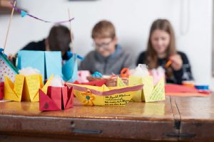 So entstehen gleich mehrere Kränze an einem Abend. „Einer für die Oma, einer für uns, einer mit einer Kerze und vielleicht noch einer mit vier Kerzen“, sagt der achtjährige Ragnar. „Am Ende gebe ich über jeden Kranz ein gewebtes Band aus Schafwolle. Für uns ist das ein Ausdruck für den Zusammenhalt der Familie“, meint Julia. „Ich freue mich vor allem darauf, dass ich die Kerzerln Anzünden darf“, strahlt Ragnar.