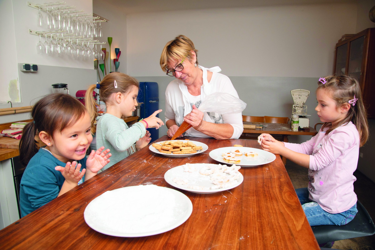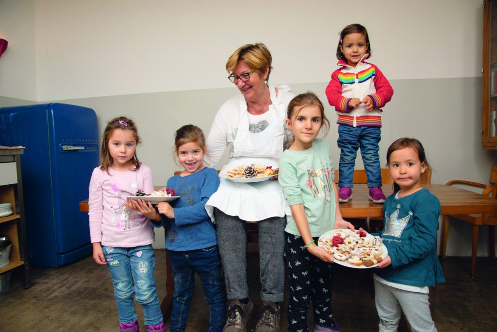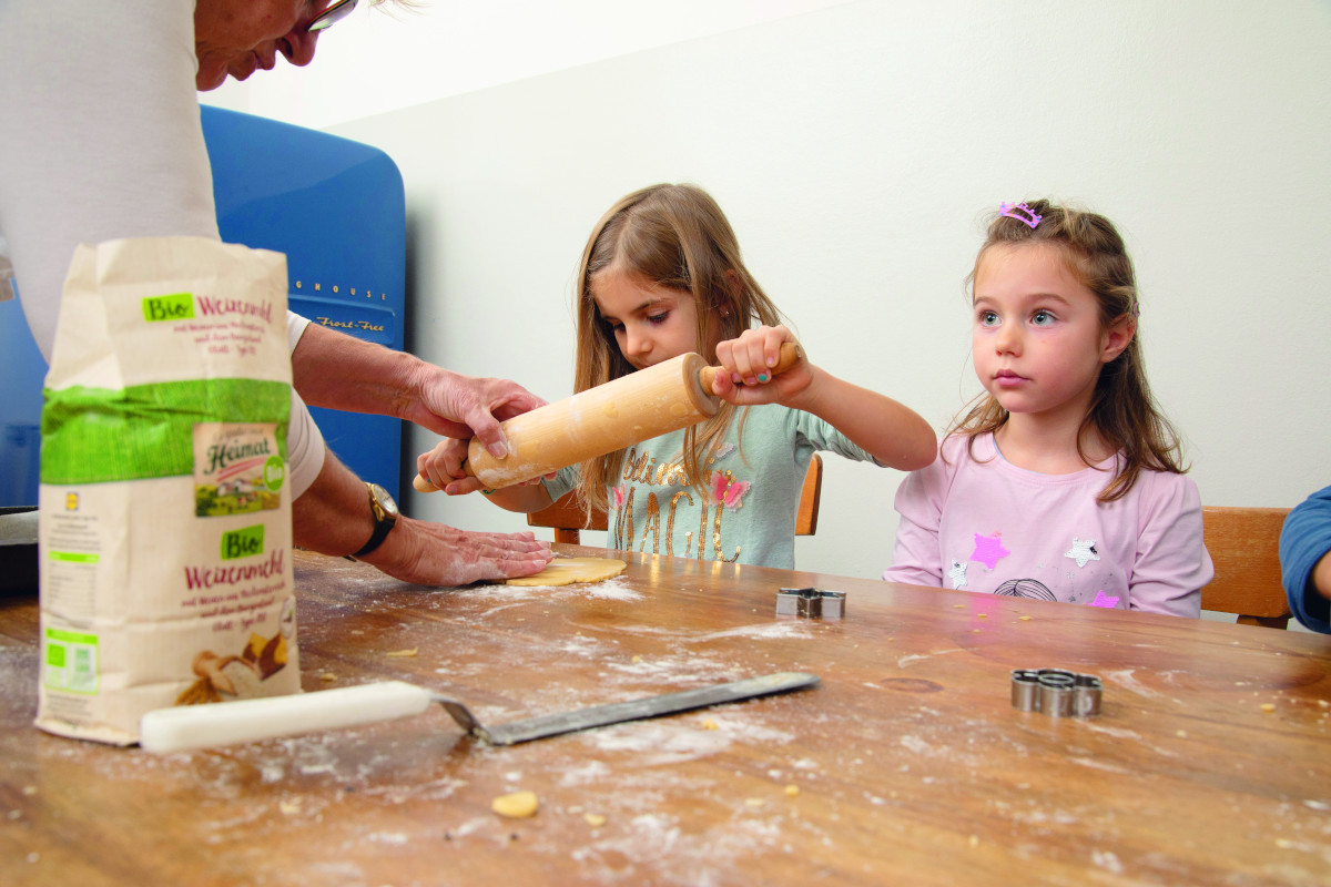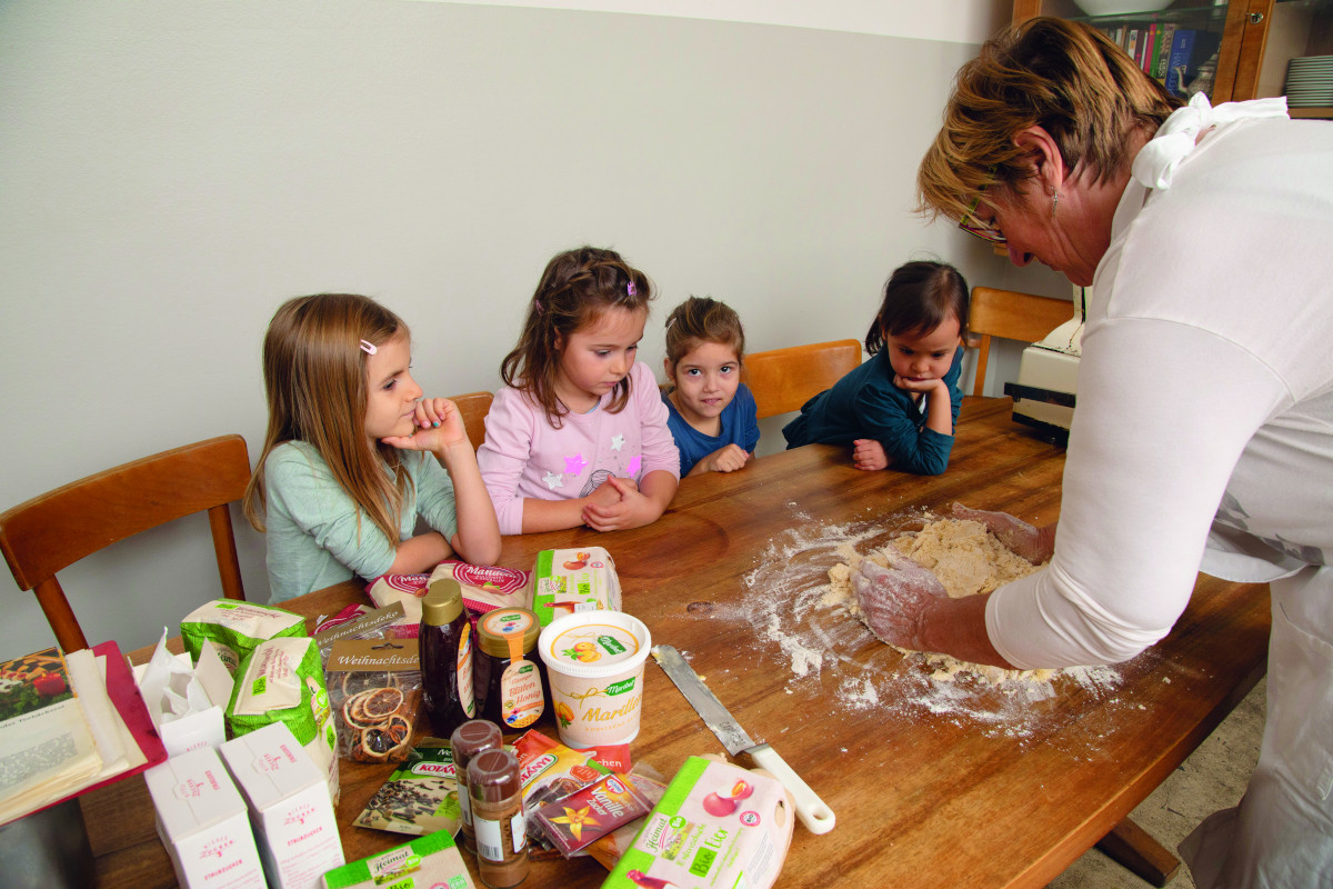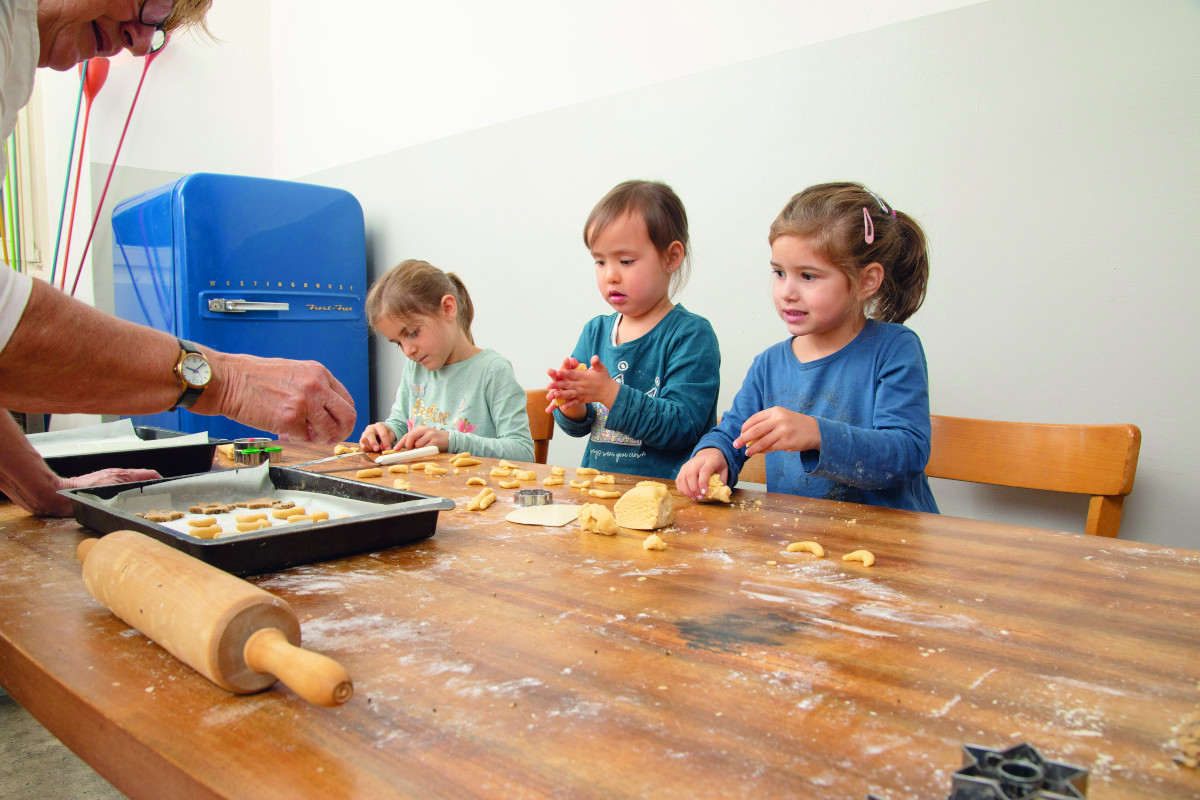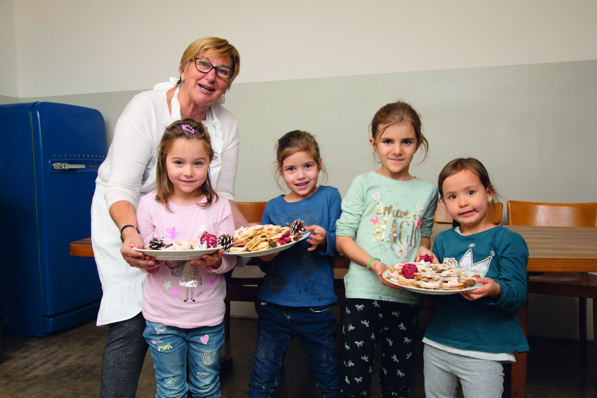 Marlies, 4, Lucie, 5, Tamina, 6, und Lea, 4, halfen Oma Maria tatkräftig beim Keksebacken.