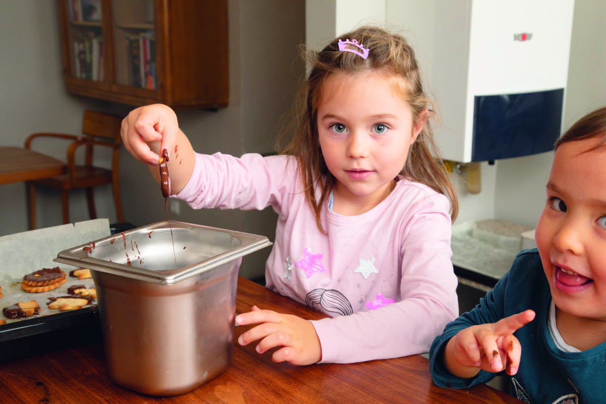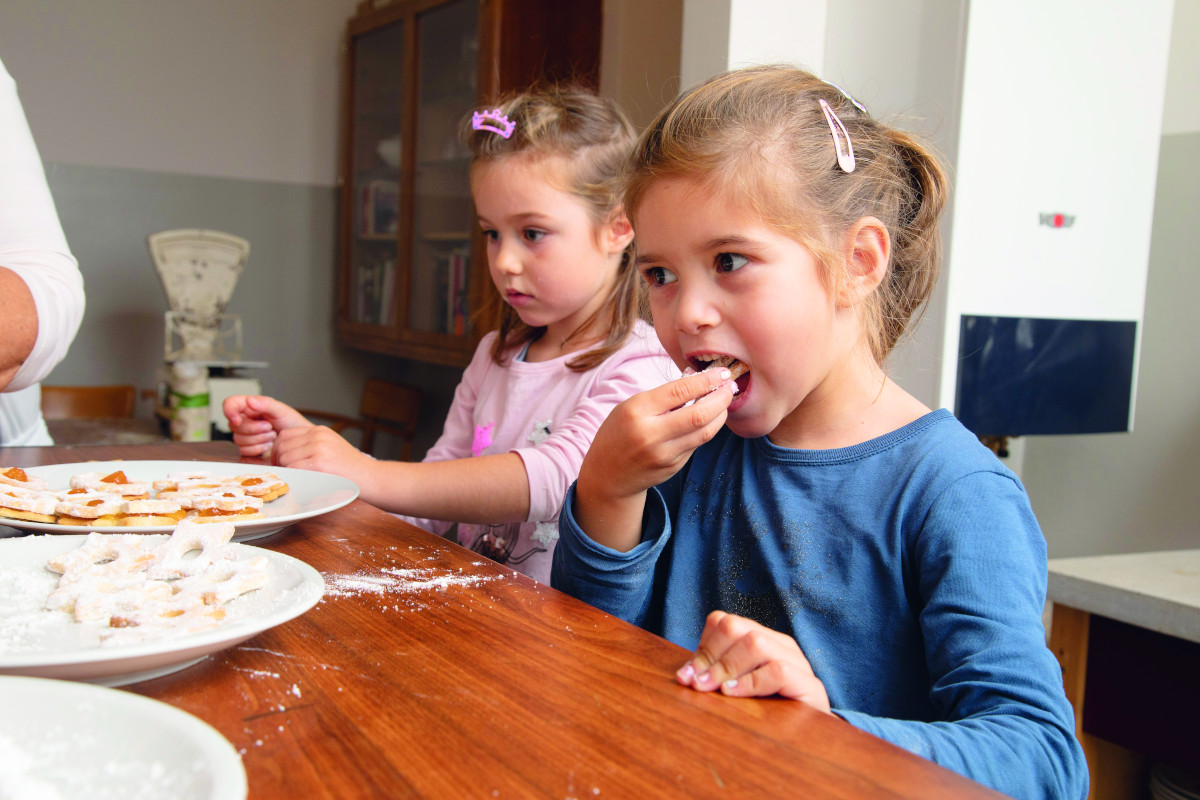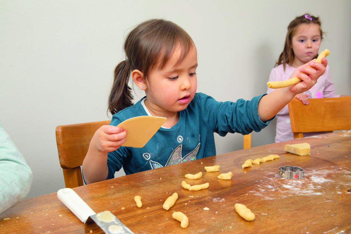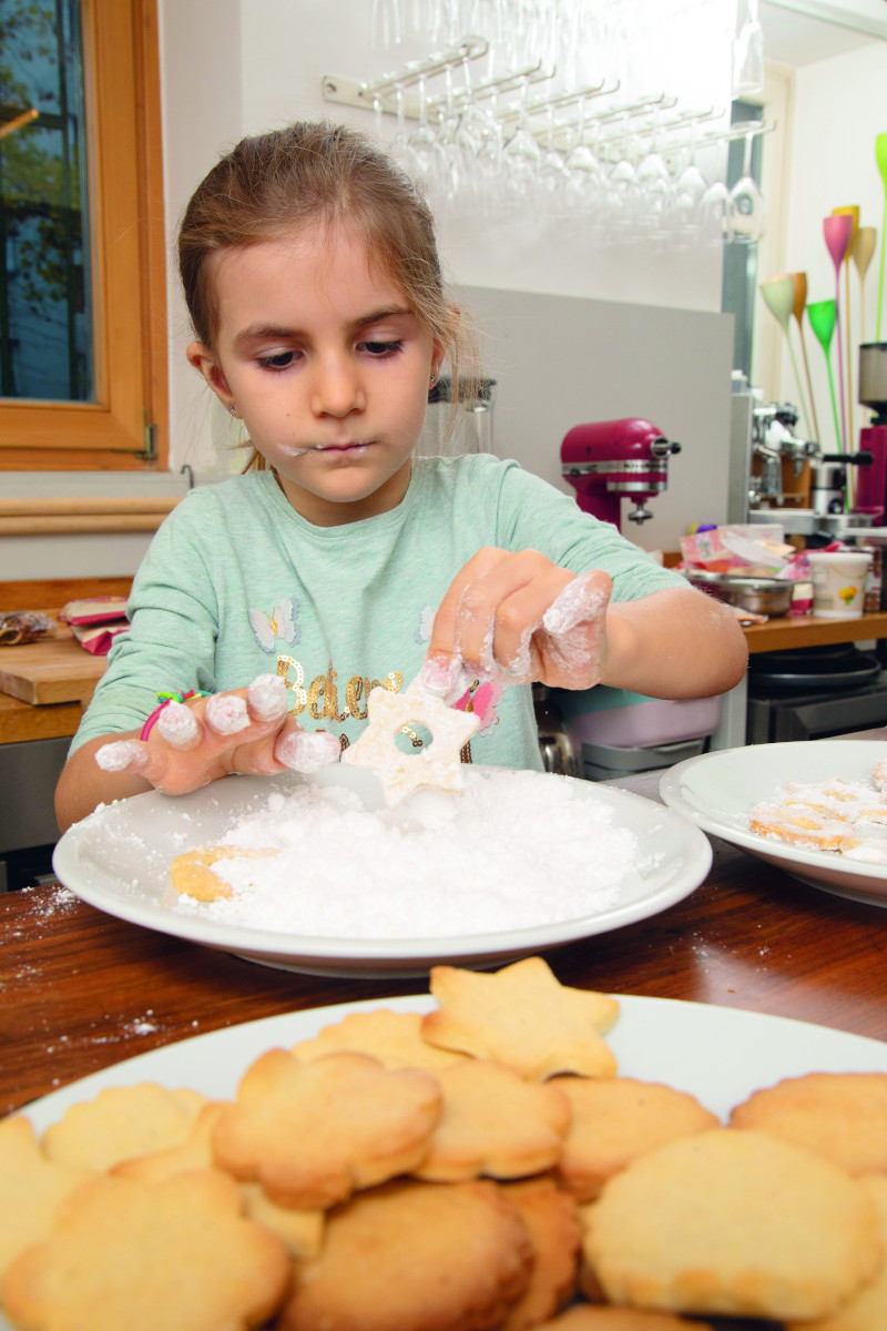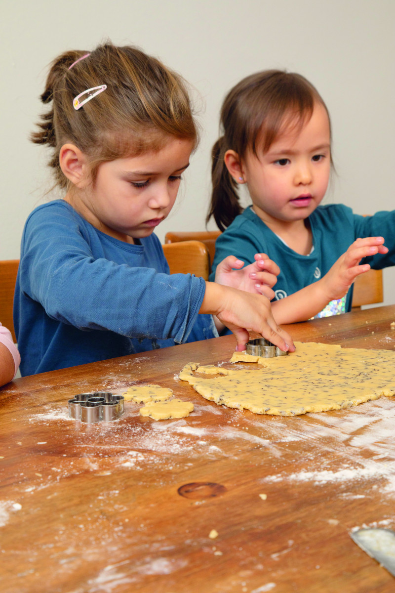 Marlies, 4, Lucie, 5, Tamina, 6, und Lea, 4, halfen Oma Maria tatkräftig beim Keksebacken.