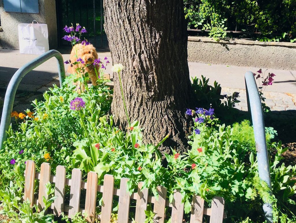 Baumschmuck. Auch Baumscheiben bleiben in Wien nicht unbepflanzt. In Hietzing hat die farbenfrohe Fläche auch tierische Bewunderer.
