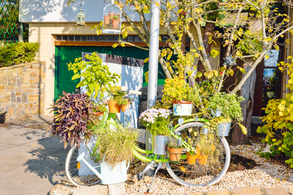 In Penzing wird ein altes Fahrrad zum Blumen- und Pflanzenständer umfunktioniert und somit zum freudigen Hingucker für Vorbeigehende gemacht. Für diese kreative Pflanzenidee gab es 2020 für Iris R. einen Anerkennungspreis der Jury.