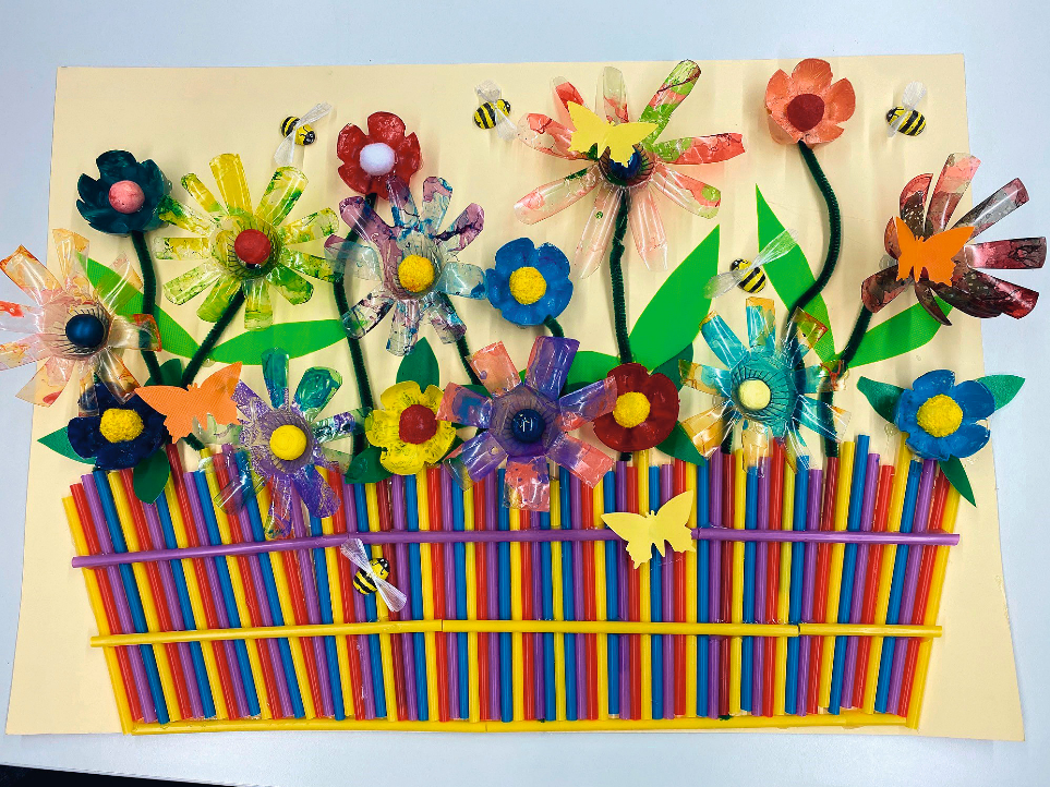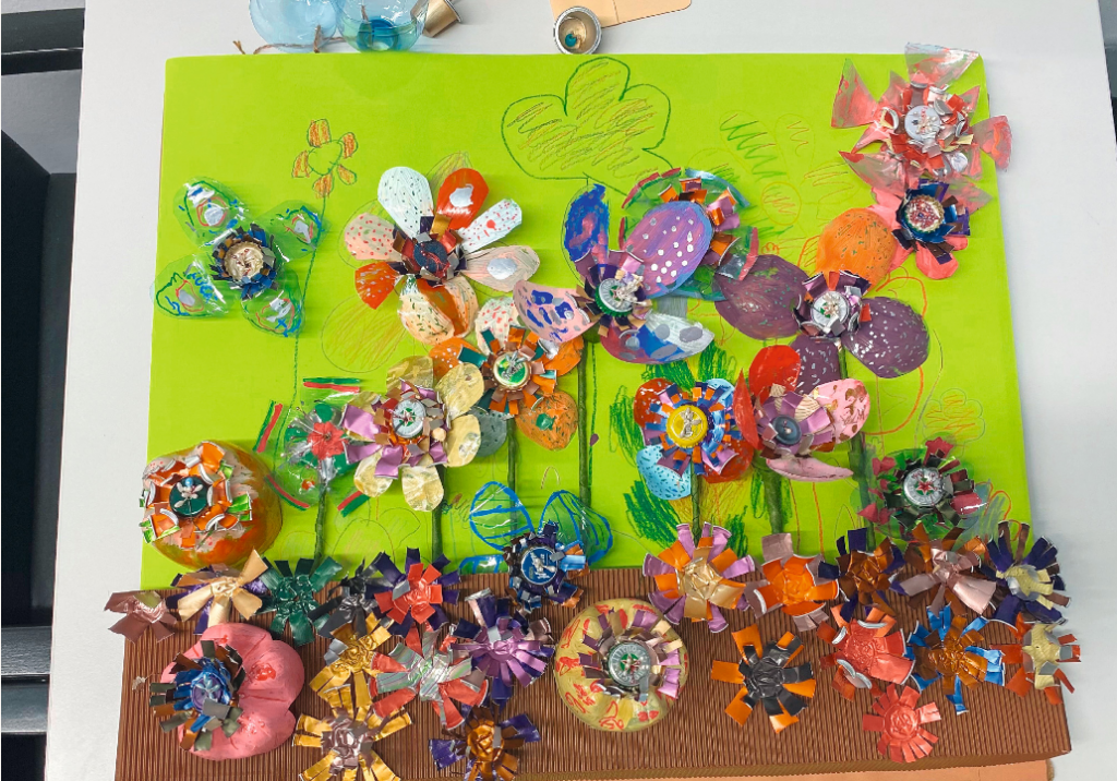 Die Kinder im Kindergarten Dornbacher Straße bastelten aus alten Trinkhalmen und PET-Flaschen dieses blühende Beet.