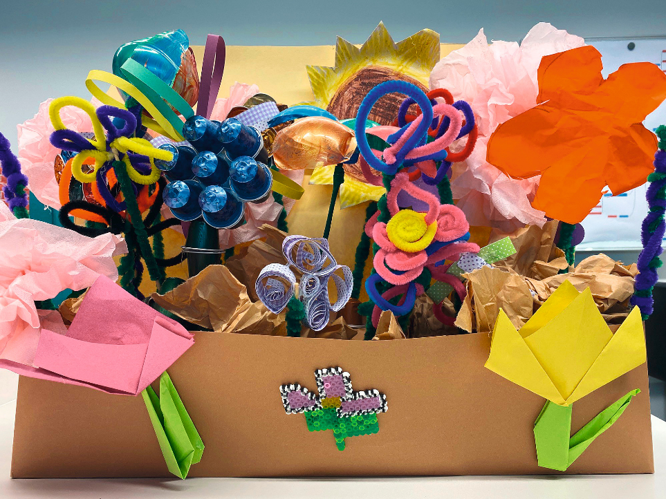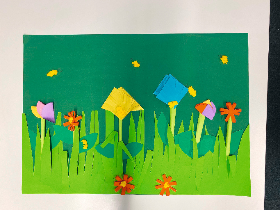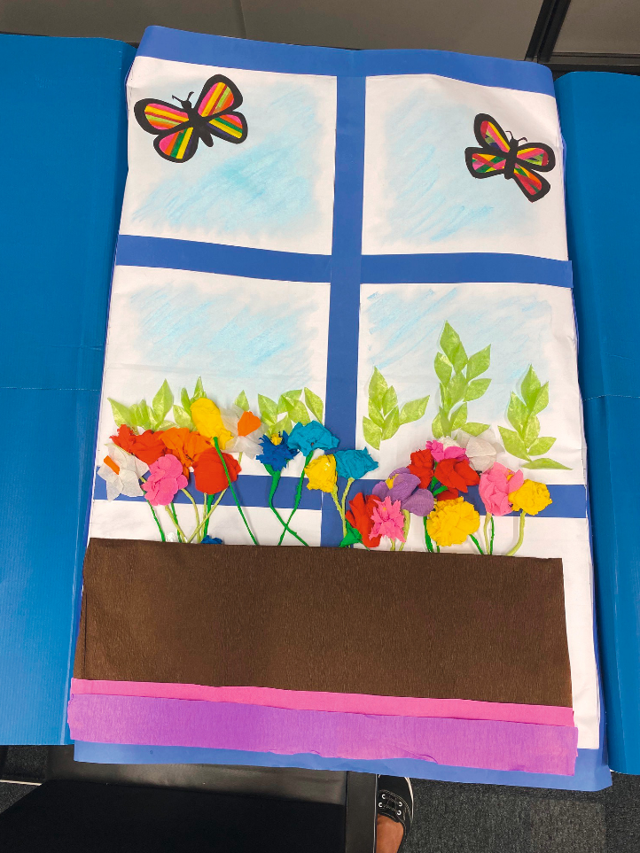 Der Kindergarten Markhofgasse gestaltete diese wunderschöne Blumenwiese mit viele Liebe zum Detail aus Buntpapier.