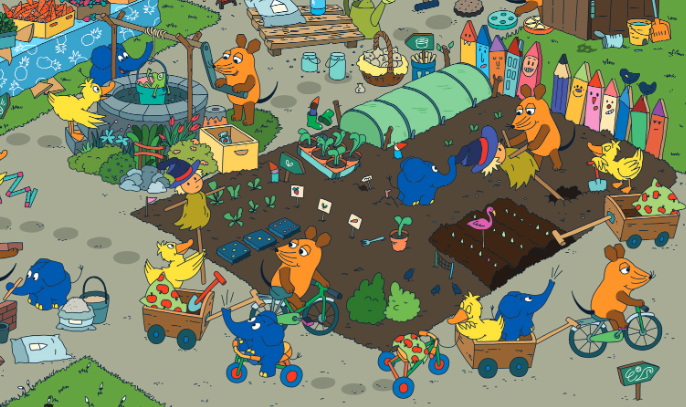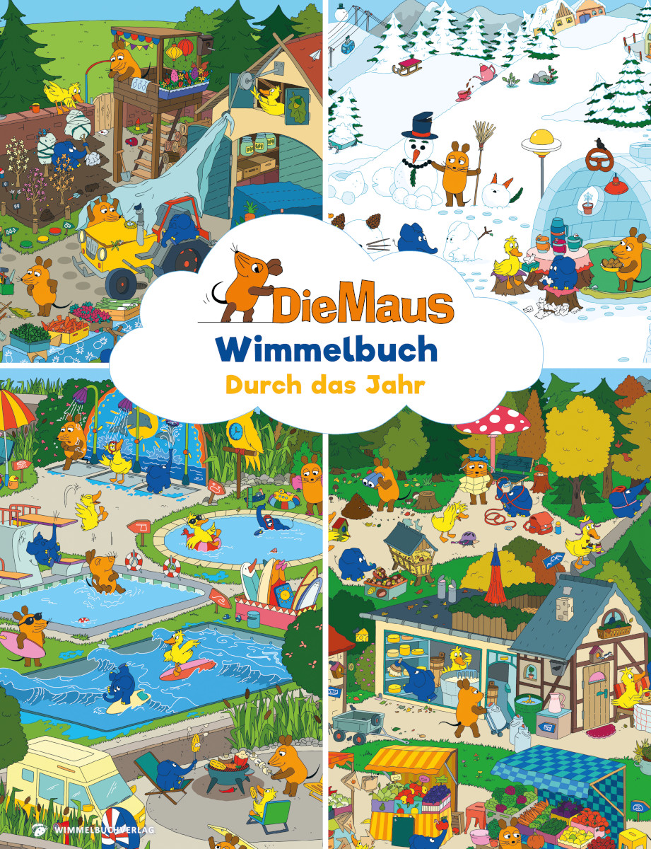 „Die Maus Wimmelbuch – Durch das Jahr mit der Maus“: Im Frühling gibt es für die Maus und ihre Freunde viel zu tun. Zu Ostern machen sie sich auf die Suche nach alle den versteckten Ostereiern. Im Sommer verbringen sie viel Zeit im Schwimmbad und im Herbst geht es ab in die Berge. Als dann der Winter da ist, haben die drei Freunde jede Menge Spaß im Schnee und feiern Weihnachten. Ein Jahr voller Abenteuer, Spaß, zum Lachen und Lernen.
