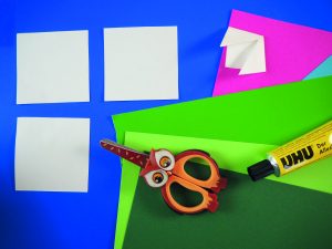 Quadrate aus weißem Papier (etwa 7×7 cm)