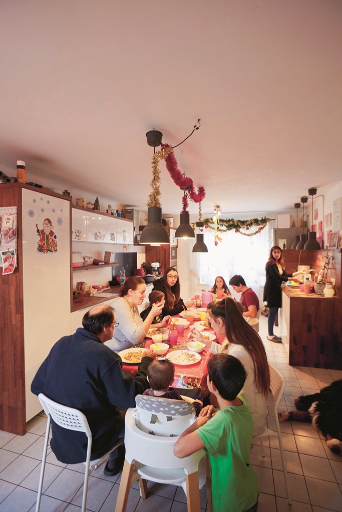 „Das Schöne bei uns ist, dass du immer jemanden zum Reden oder Spielen hast“, findet Tamara, 18. „Du bist nie alleine, und es ist dauernd was los.“ Die älteren Kinder helfen den jüngeren – beim Anziehen, Essen, bei den Schulaufgaben. Streitereien gibt es manchmal wegen Gewand-Ausborgen oder wenn „der eine den anderen einfach nervt“. Schade sei allerdings, dass die ganze Familie nie auf einmal in Urlaub fahren kann. „Das ist sowohl organisatorisch als auch finanziell nicht drin“, bedauert Mutter Claudia. Denn es haben nicht alle zur gleichen Zeit (schul-)frei oder die gleichen Interessen. Also unternimmt man immer gruppenweise „Expeditionen“ – zu sechst ins Kino, zu fünft Besorgungen im Bauhaus erledigen, oder es machen die Ältesten mit deren Freunden eine Reise. Eine Herausforderung stellt aktuell das Einkaufen dar: Das Auto der Familie ist eingegangen, also heißt es „improvisieren“: Die kleinen Geschwister holen Gebäck beim Bäcker, die großen nehmen ein paar Taschen Einkauf auf dem Weg von der Schule oder Arbeit nach Hause, die Eltern fahren täglich mit dem Kinderwagen zum Supermarkt und voll beladen wieder heimwärts. Und manchmal finden sich nette Nachbarn, die ihr Auto für den Wochenendeinkauf herborgen.