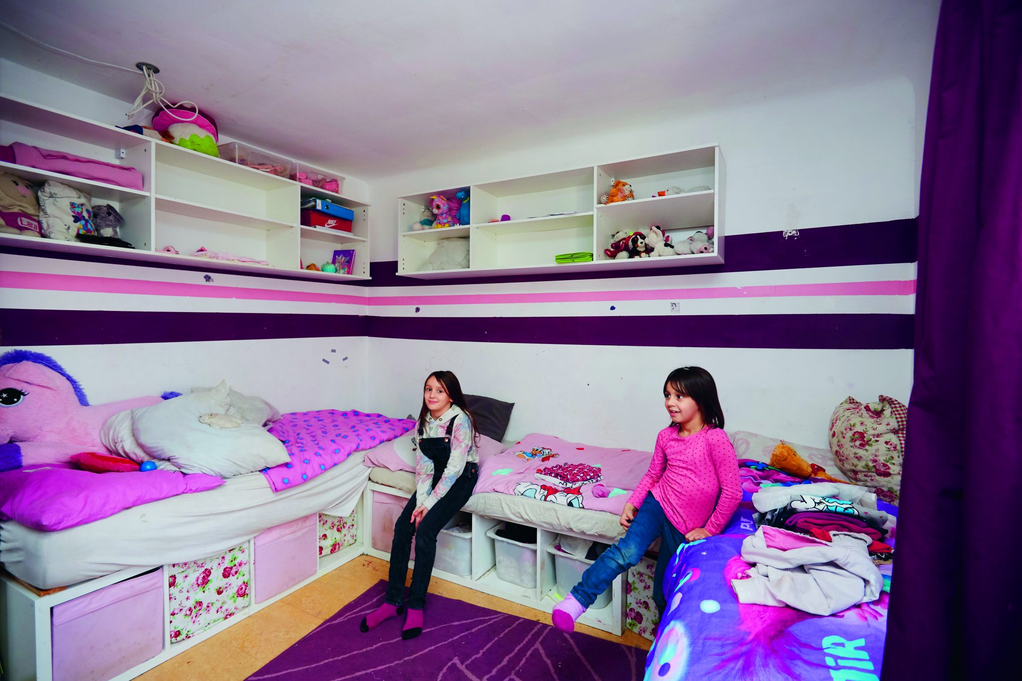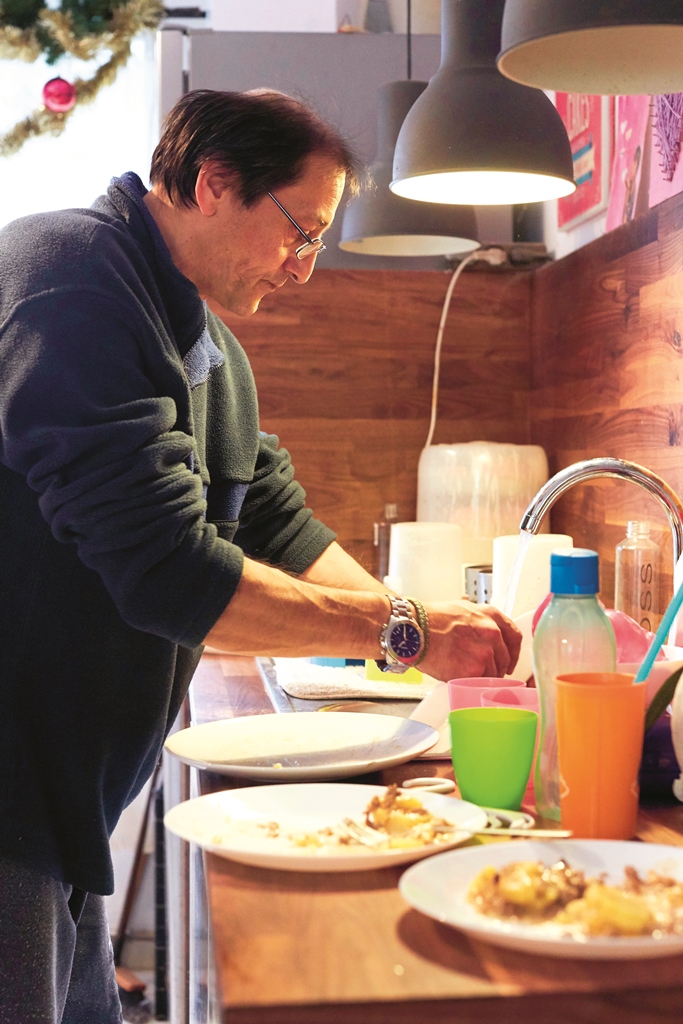 13 Kinder verdrücken nicht nur einiges, sie brauchen auch viel Aufmerksamkeit und Betreuung. Von früh bis spät. Pause gibt’s nicht. Denn: „Irgendwas ist immer“, weiß Vater Eugen, 51. Und so wird möglichst wenig dem Zufall überlassen. Das meiste hat System oder zumindest eine angestrebte Struktur. Immerhin müssen Tag ein, Tag aus die Bedürfnisse von neun Mädchen und vier Buben berücksichtigt werden. Hinzu kommen noch vier weitere – tierische – Familienmitglieder alias Berner Sennenhunde Leo, Jumanji, Heidi und Lilly. „Mit Leo lernten die Kinder Gehen. Sie zogen sich an ihm hoch, hielten sich am Fell fest und stampften dann mit ihm mit“, erzählt die Mutter, während sie nach dem Essen der ersten Kinderrunde am Schreibtisch mit den Hausübungen hilft. Zuerst sind die jüngeren dran, dann die älteren. Die beiden ältesten Töchter gehen zwar schon arbeiten, wohnen aber noch zu Hause. „Sie sind mir eine große Hilfe“, so Claudia. Und die einzige. Denn Großeltern gibt es bei den Krausams leider keine mehr, Kindersitter werden budgetbedingt aus den eigenen Reihen rekrutiert. „Meine Frau macht alles, sie ist die ‚Chefin“ hier“, stellt Eugen schmunzelnd fest. „Vom Kochen über den Haushalt bis hin zu den vielen organisatorischen Aufgaben.“ Er selbst arbeitet am Hannovermarkt in Wien-Brigittenau. „Das ist praktisch, so haben wir immer frisches Obst und Gemüse.“ Lebensmittelverschwendung kann der tüchtige Vorarbeiter nämlich gar nicht leiden. „Am Markt wird so viel weggeschmissen, auch Waren, die noch vollkommen in Ordnung sind – also nehme ich sie mit oder bekomme immer wieder etwas geschenkt.“