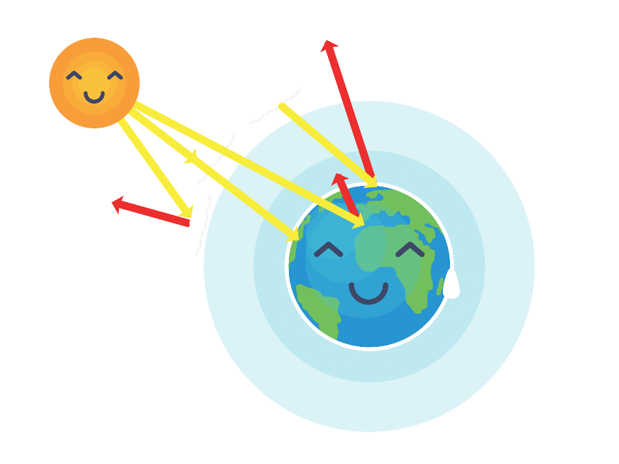 Unsere Erde ist von einer 100 Kilometer dicken Schicht umgeben, der Atmosphäre. Sie sorgt dafür, dass die Erde warm bleibt und wir auf ihr leben können: Dank ihr kann nur ein Teil der Sonnenwärme, die auf die Erde gelangt, wieder in den Weltraum entweichen. Ein wichtiger Bestandteil der Atmosphäre ist Kohlendioxid (CO2). Und davon haben wir Menschen in den letzten 100 Jahren so viel erzeugt, dass sich die Atmosphäre verdichtet hat. Die Folge: Der natürliche Treibhauseffekt wird verstärkt, weniger Sonnenwärme entflieht zurück ins All, und die Erde heizt sich immer mehr auf.