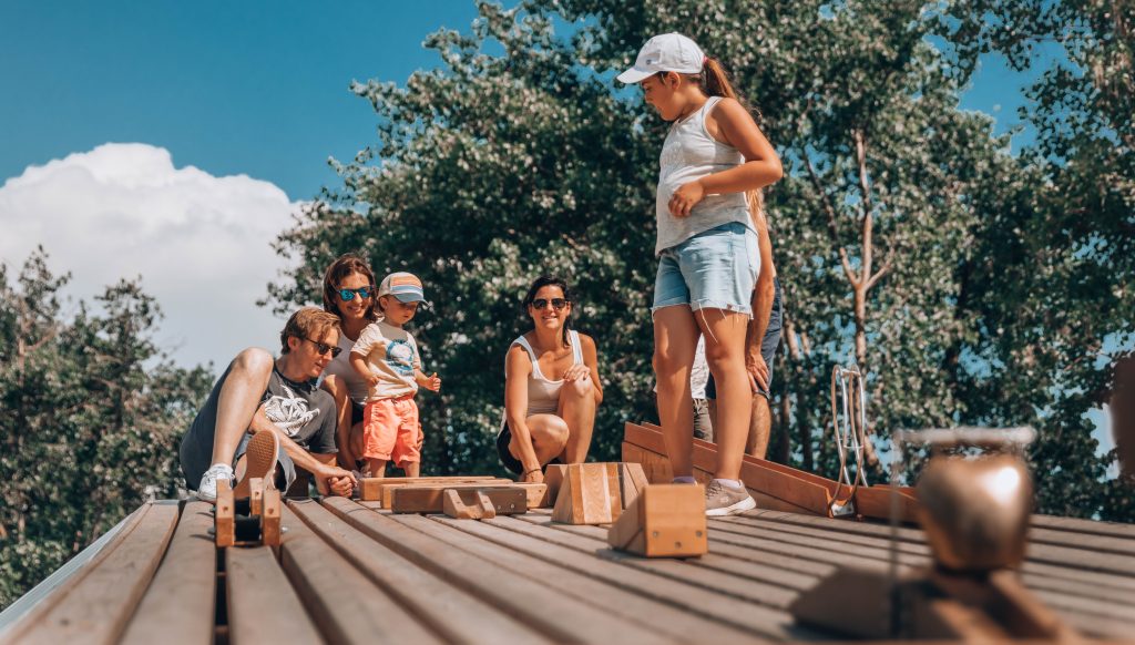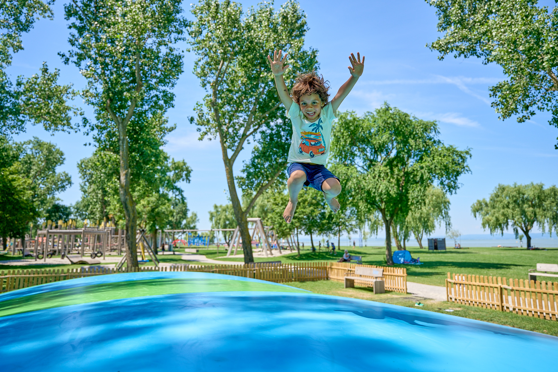 Hier wartet ein 2 Kilometer langer Naturstrand mit flach abfallendem Wasser – perfekt für kleine Wasserratten, die gefahrlos planschen und schwimmen können. Doch das ist erst der Anfang. Direkt hinter dem Strand erstreckt sich die 18.000 Quadratmeter große Familien-Erlebniswelt PODOplay, die Kinderherzen höherschlagen lässt: der größte Hüpfpolster Österreichs, überdimensionale Klettergerüste, ein fantasievoller Motorikpark sowie Wasser- und Sandspielplatz laden zum ausgelassenen Toben ein – schon für die Kleinsten.