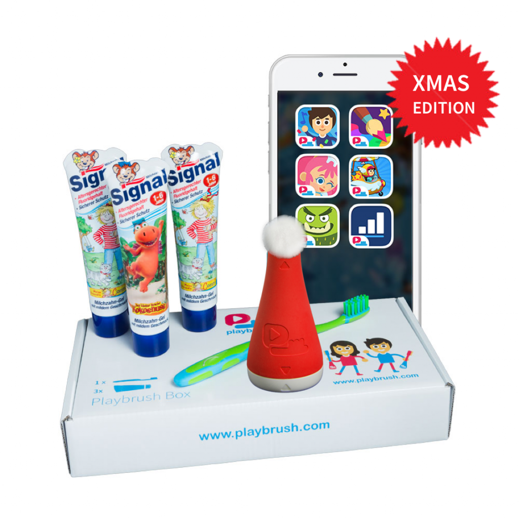 Mitten in der Badezimmer-Routine stellt sich der Nachwuchs plötzlich quer. Der Österreicher Paul Varga hat ein Patenkind und eine lustige Idee, die den Gang zum Waschbecken zum Highlight machen: „Louis brachte seine Eltern jeden Abend zur Weissglut. Er wollte sich einfach nicht die Zähne putzen“. Einige Abende später steht für Varga und seine beiden Freunde Matthäus Ittner und Tolulope Ogunsina fest, dass eine spielerische Lösung her müsse, die auch den Kids Freude macht. Ihre Lösung heißt Playbrush. Ein Hardware-Aufsatz mit einem Verbindungselement aus farbigem Gummi – es gibt auch eine rote Weihnachtsversion mit Zipfelmütze – auf den eine Zahnbürste gesteckt wird und sie via Bluetooth zum Gamecontroller umwandelt.