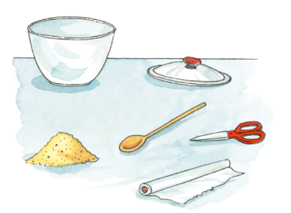 4. Die Sandkörner hüpfen bei jedem Schlag auf der Frischhaltefolie auf und ab, obwohl sie nicht berührt werden. Der Topfdeckel gerät durch dein Schlagen in Schwingungen. Der dadurch entstehende Schall wird über die Luft auf die Sandkörner übertragen.