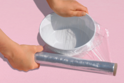 1. Ziehe die Frischhaltefolie straff über die Schüssel. Lass dir dabei von jemandem helfen.