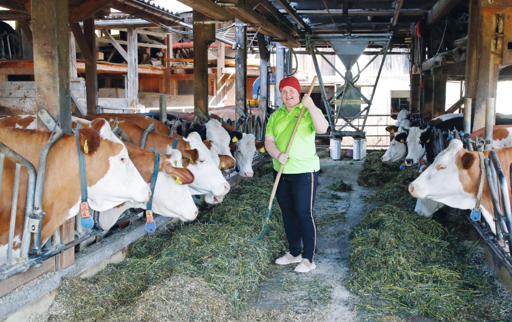 55 Milchkühe liefern täglich rund 800 Liter Milch. Petra Pobaschnig und ihre Familie haben alle Hände voll beim Füttern zu tun.