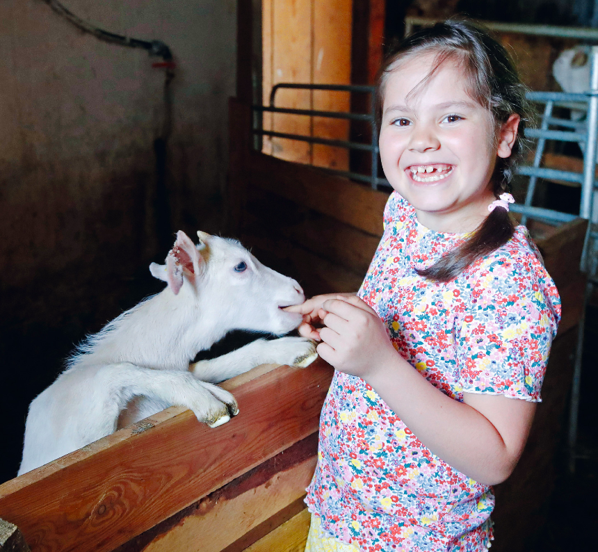 Unsere Testerin: „Die kleinen Ziegen waren total süß und so neugierig. Toll war auch, dass ich meine eigene Brombeermilch machen und mit dem Traktor mitfahren durfte.“