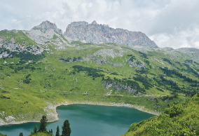 Das erste Highlight ist gerade einmal 200 Meter von der Busstation entfernt. Der Formarinsee bei Lech am Arlberg ist zwar nicht der eigentliche Quellsee des Lechs (sein Wasser rinnt unterirdisch ab), aber hier startet der Lechtalweg in einer spektakulären Bergkulisse. Der türkisfarbene See wird von der eindrucksvollen Roten Wand überragt. Logisch, dass dieser See 2015 zum schönsten Platz Österreichs gekürt wurde. Der Weg nach Lech geht immer am Fluss entlang. Am Weg sollte man unbedingt im „Älpele“ einkehren. Kulinarischer Geheimtipp ist hier der Topfenkuchen.