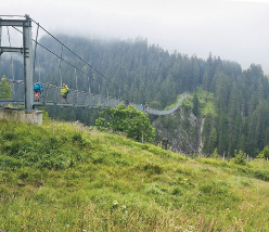 In Holzgau führt die höchste Hängebrücke Österreichs in 110 Meter Höhe über das Höllbachtal. Die Überquerung der leicht schwankenden, aber bestens gesicherten Brücke ist etwas für Mutige.